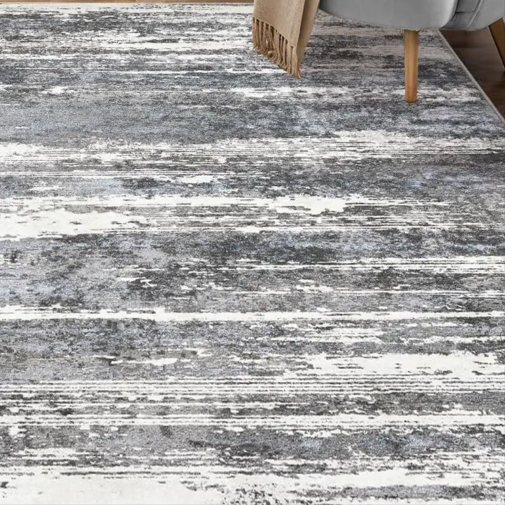 🏠: Modern Abstract 8x10 Area Rug - Black Blue Neutral Aesthetic Washable