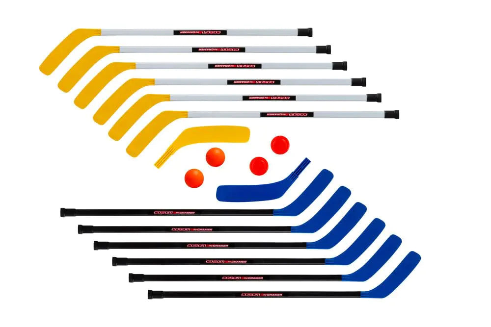 - 🏒 Complete Set: 12 plastic sticks, 2 goalie sticks, 2 replacement blades, 2 pucks, and 2 balls