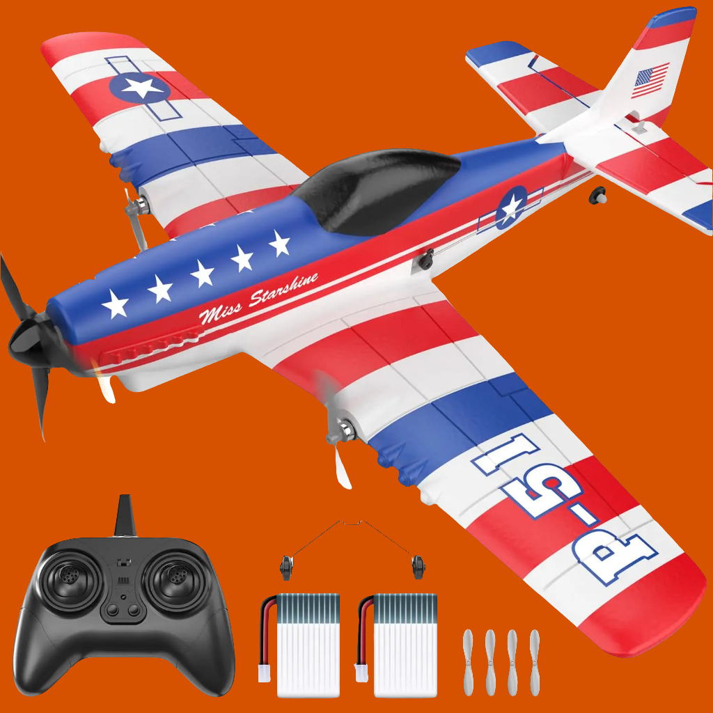 ✈️: DEERC P51D Mustang RC Fighter Plane - 3 Channel Remote Control Aircraft with 6-Axis Gyro