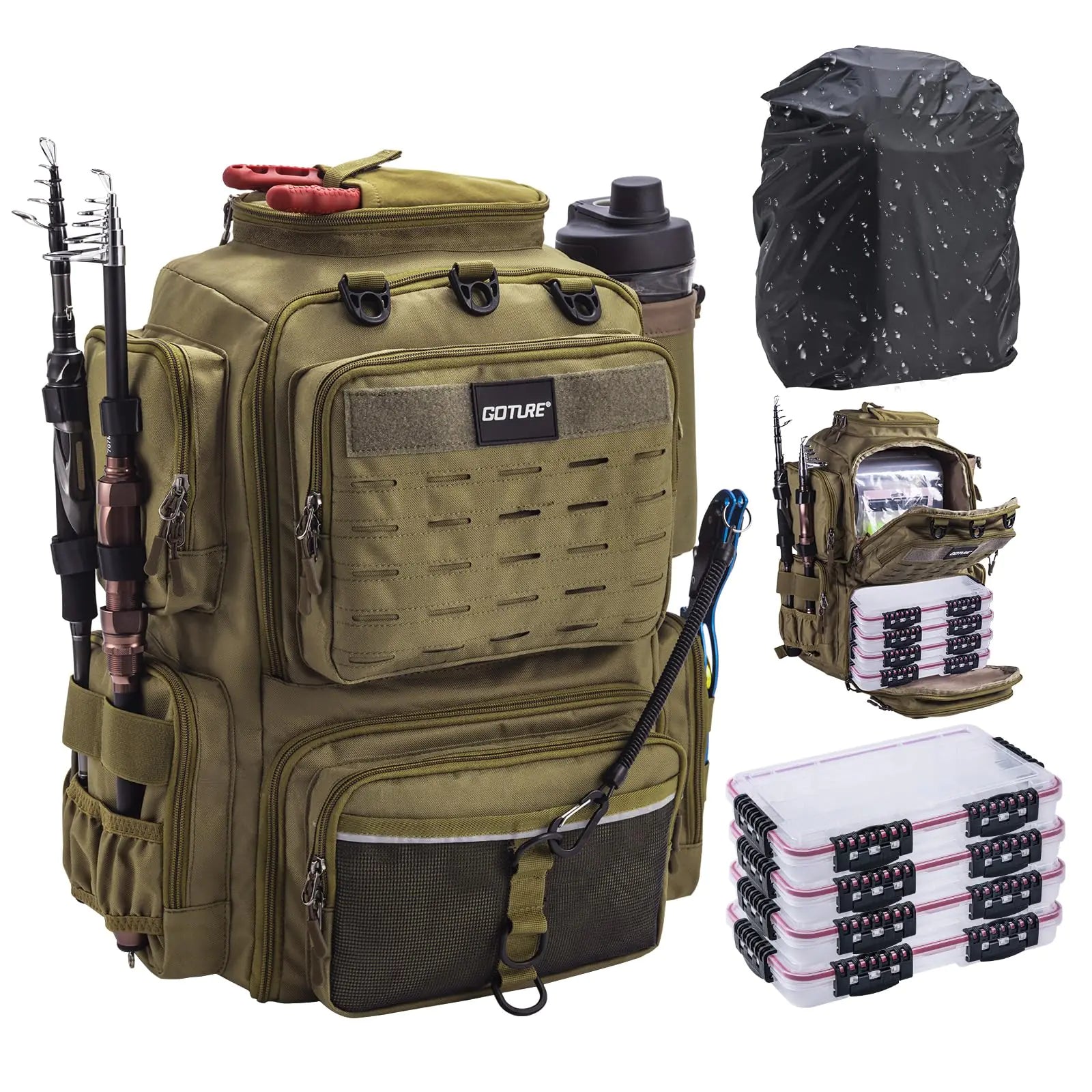 🎣: Goture 45L Fishing Backpack with 4 Tackle Boxes - Large 600D Storage Bag with Rod Holders