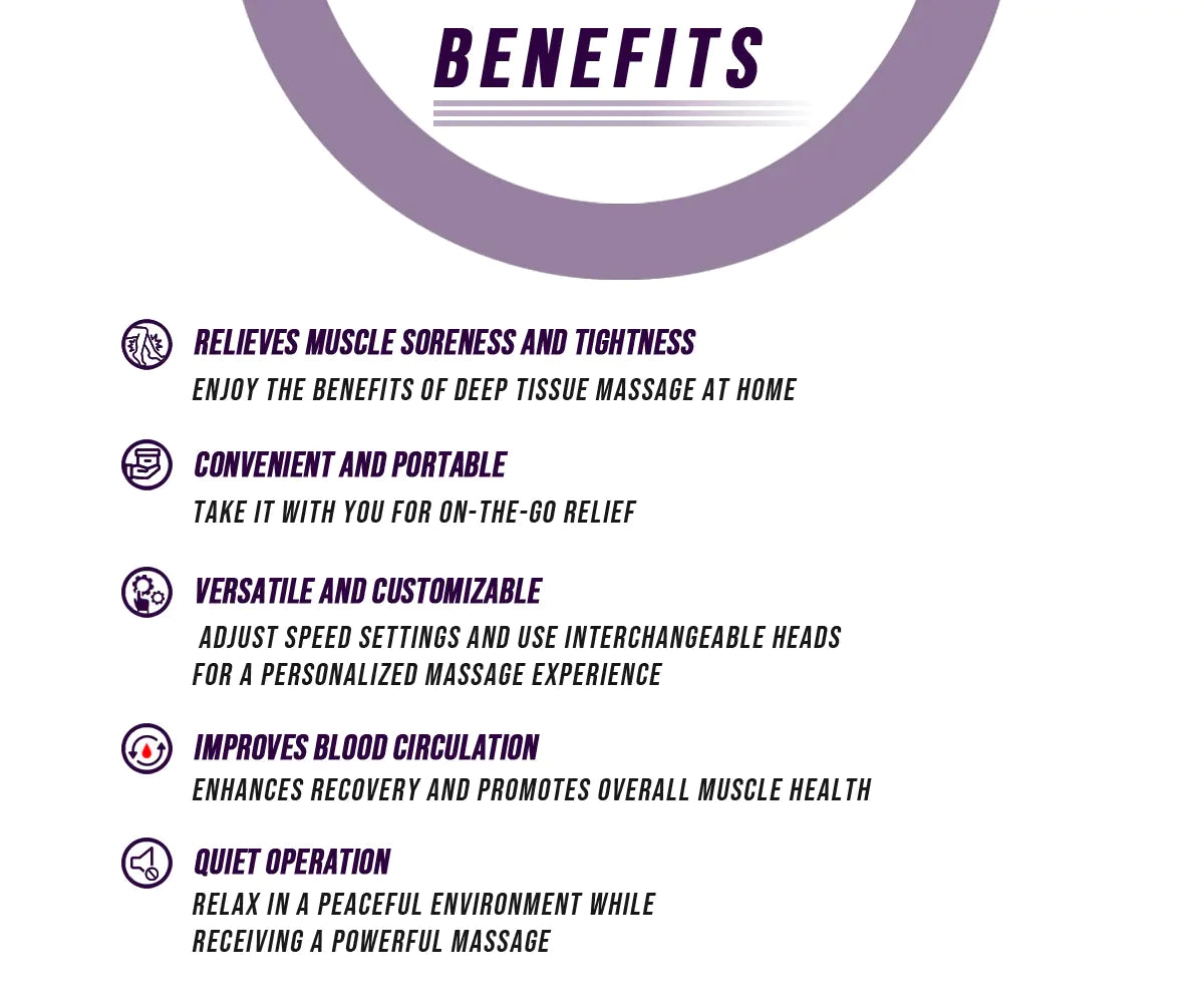 Accelerate your recovery and eliminate muscle tension with our professional-grade Muscle Massage Gun! This powerful deep tissue recovery device delivers targeted percussion therapy to help athletes, fitness enthusiasts, and anyone seeking relief from muscle soreness and stiffness.